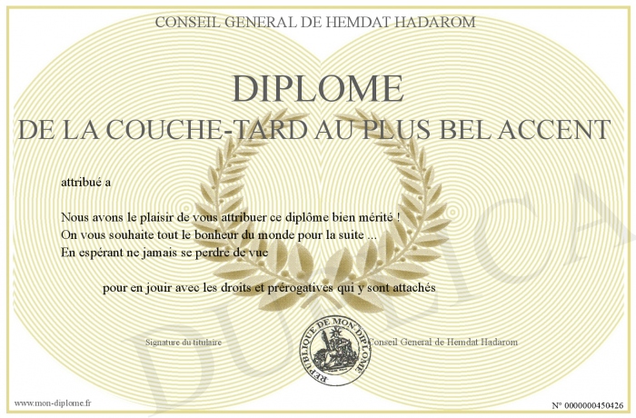 Envoyez par email votre Diplôme de la couche-tard au plus bel accent personalisé