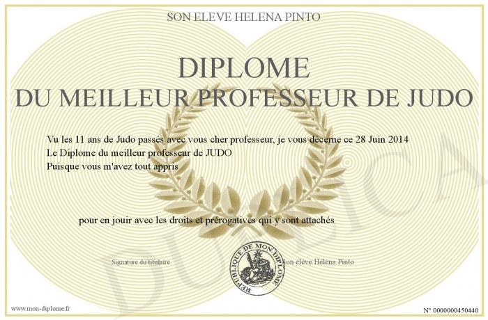 Envoyez par email votre Diplôme du meilleur professeur de JUDO personalisé