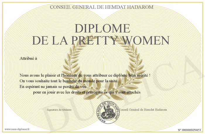 Envoyez par email votre Diplôme de la Pretty Women personalisé