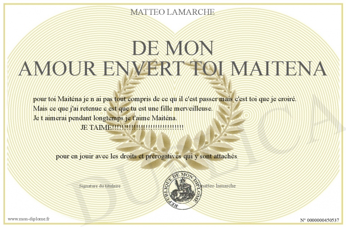Envoyez par email votre de mon amour envert toi Maiténa personalisé