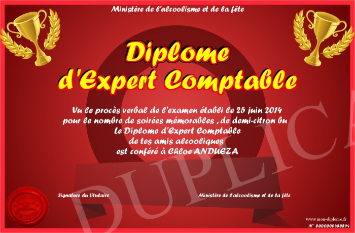 Envoyez par email votre Diplôme d'Expert Comptable personalisé