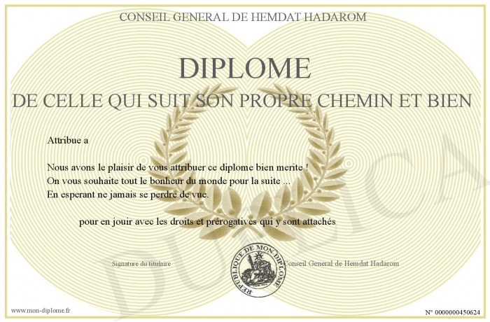 Envoyez par email votre Diplôme de celle qui suit son propre chemin et bien personalisé