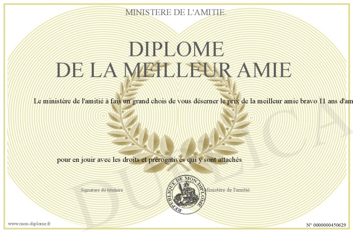 Envoyez par email votre Diplôme de la meilleur amie personalisé