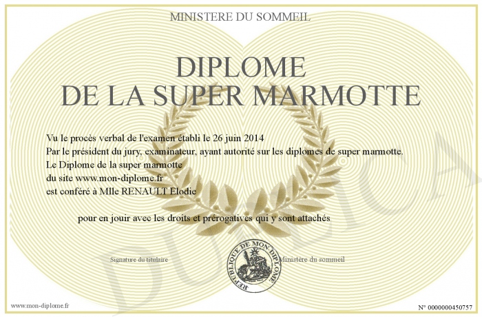 Envoyez par email votre Diplôme de la super marmotte personalisé