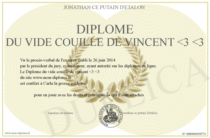 Envoyez par email votre Diplôme du vide couille de vincent -3 -3 personalisé