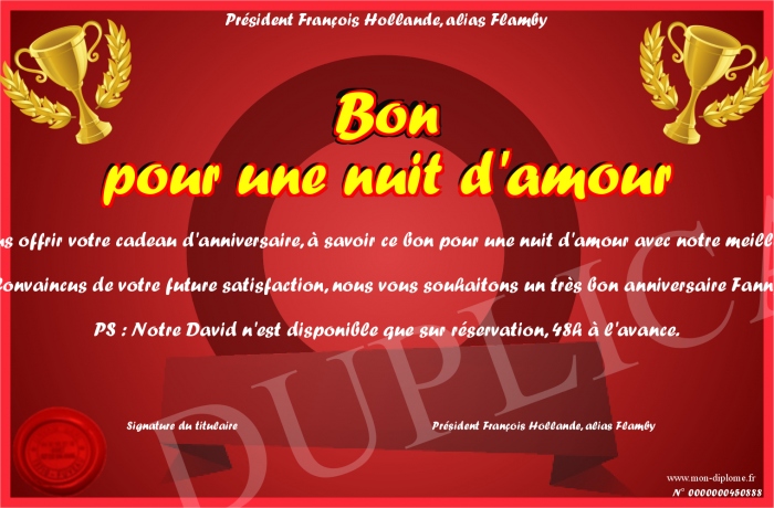Envoyez par email votre Bon pour une nuit d'amour personalisé