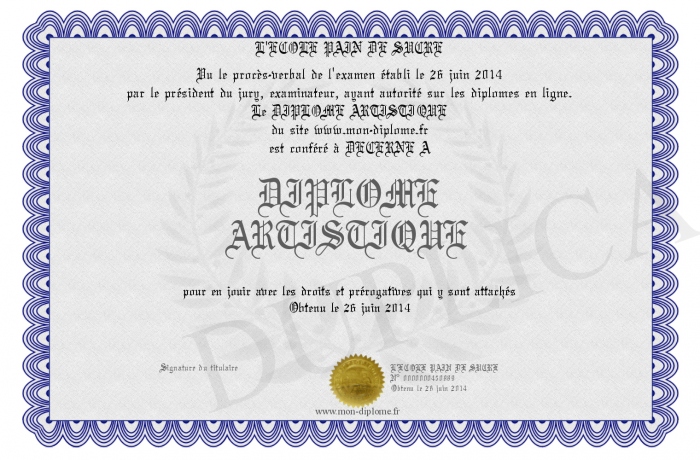 Envoyez par email votre DIPLOME ARTISTIQUE personalisé