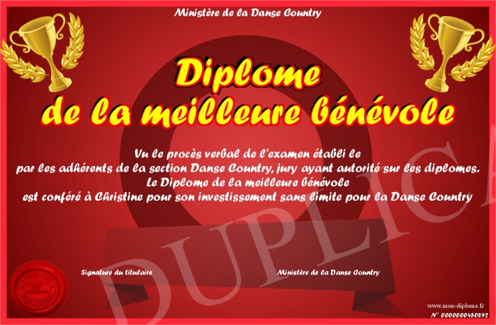 Envoyez par email votre Diplôme de la meilleure bénévole personalisé
