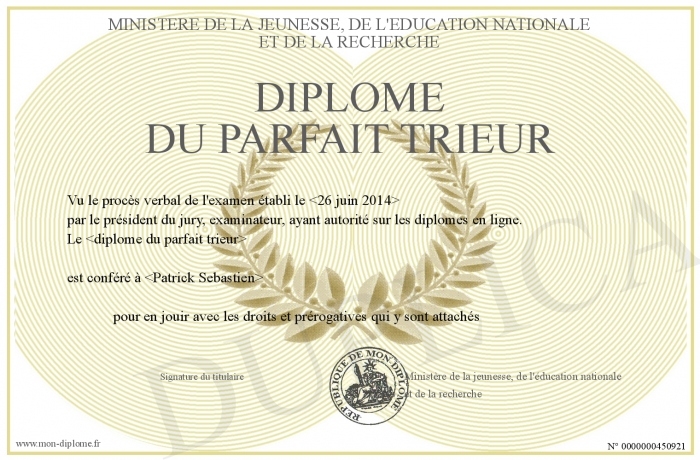 Envoyez par email votre Diplôme du parfait trieur personalisé