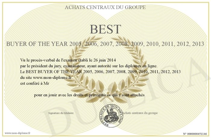 Envoyez par email votre BEST BUYER OF THE YEAR 2005, 2006, 2007, 2008, 2009, 2010, 2011, 2012, 2013 personalisé