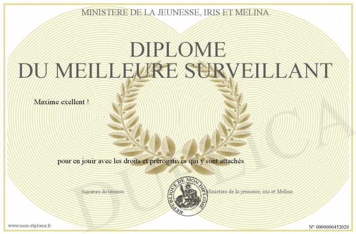 Envoyez par email votre Diplôme du meilleure surveillant personalisé