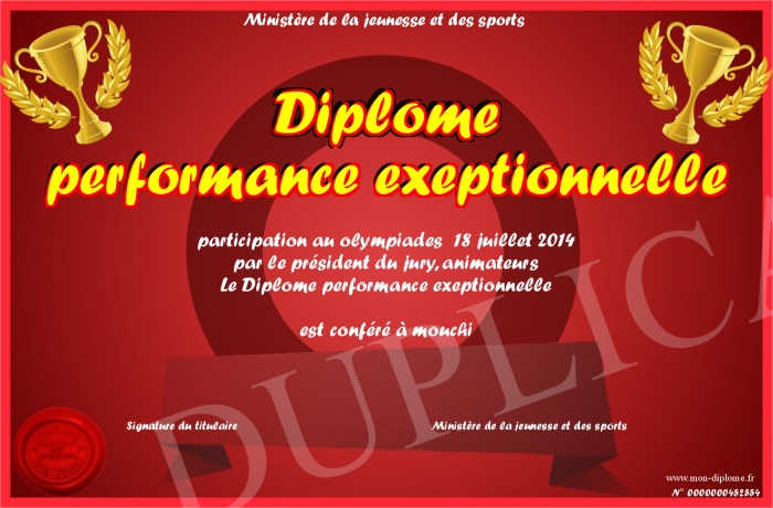 Envoyez par email votre Diplôme performance exeptionnelle personalisé