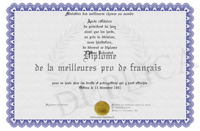 Envoyez par email votre Diplôme de la meilleures pro de français personalisé