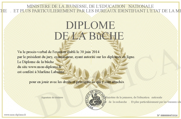 Envoyez par email votre Diplôme de la bûche personalisé