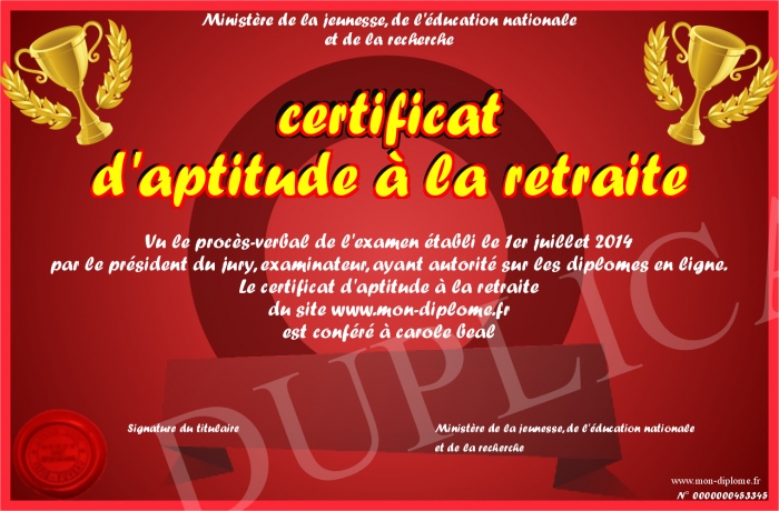 Envoyez par email votre certificat d'aptitude à la retraite personalisé