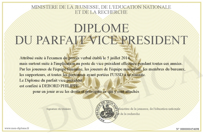 Envoyez par email votre Diplôme du parfait vice président personalisé