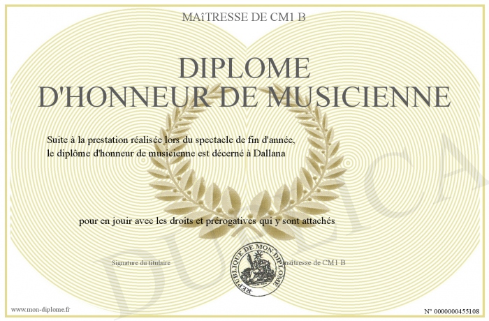 Envoyez par email votre Diplôme d'honneur de musicienne personalisé