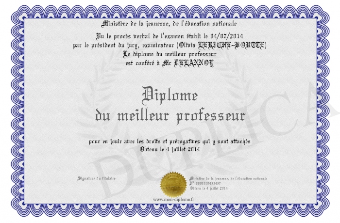 Envoyez par email votre Diplôme du meilleur professeur personalisé