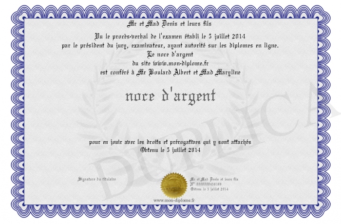 Envoyez par email votre noce d'argent personalisé