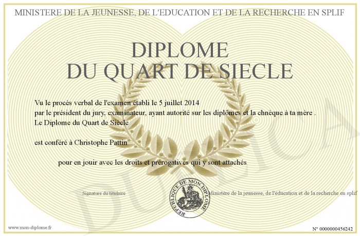 Envoyez par email votre Diplôme du Quart de Siècle personalisé