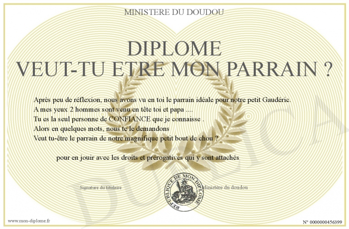 Envoyez par email votre Diplôme Veut-tu etre mon parrain ? personalisé