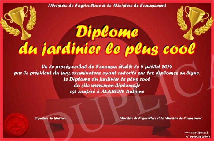 Envoyez par email votre Diplôme du jardinier le plus cool personalisé