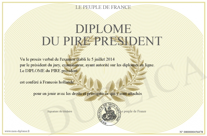 Envoyez par email votre DIPLOME du PIRE président personalisé