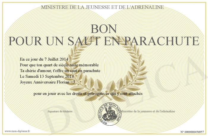 Envoyez par email votre Bon pour un saut en parachute personalisé