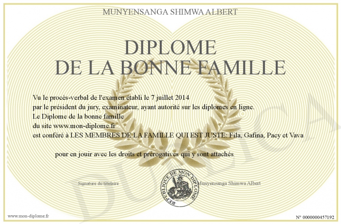Envoyez par email votre Diplôme de la bonne famille personalisé