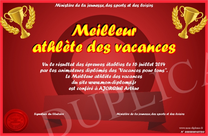 Envoyez par email votre Meilleur athlète des vacances personalisé