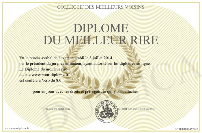 Envoyez par email votre Diplôme du meilleur rire personalisé