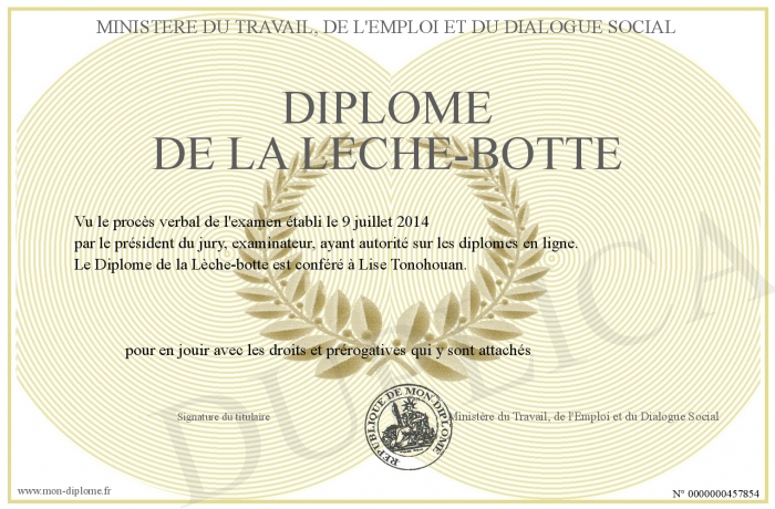 Envoyez par email votre Diplôme de la Lèche-botte personalisé