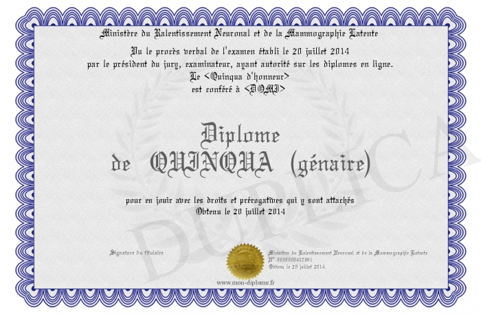 Envoyez par email votre Diplôme de QUINQUA (génaire) personalisé