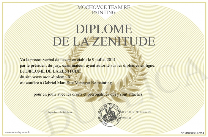Envoyez par email votre DIPLOME DE LA ZENITUDE personalisé