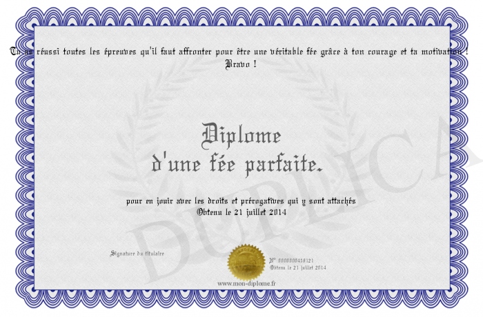Envoyez par email votre Diplôme d'une fée parfaite. personalisé
