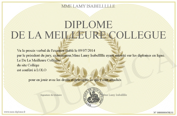 Envoyez par email votre Diplôme de la Meilleure Collègue personalisé