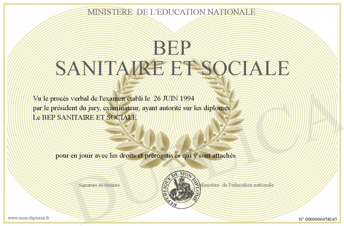 Envoyez par email votre BEP SANITAIRE ET SOCIALE personalisé