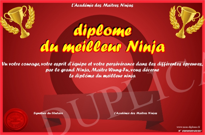 Envoyez par email votre diplôme du meilleur Ninja personalisé