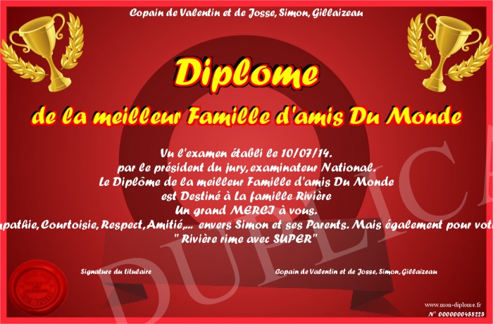 Envoyez par email votre Diplôme de la meilleur Famille d'amis Du Monde personalisé