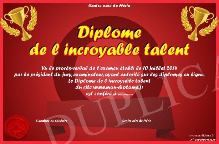 Envoyez par email votre Diplôme de l incroyable talent personalisé