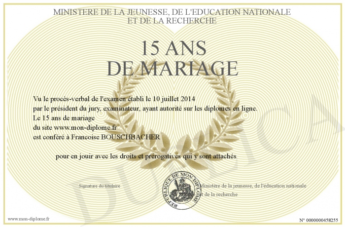 Envoyez par email votre 15 ans de mariage personalisé