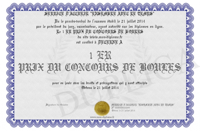 Envoyez par email votre 1 ER PRIX DU CONCOURS DE BOULES personalisé
