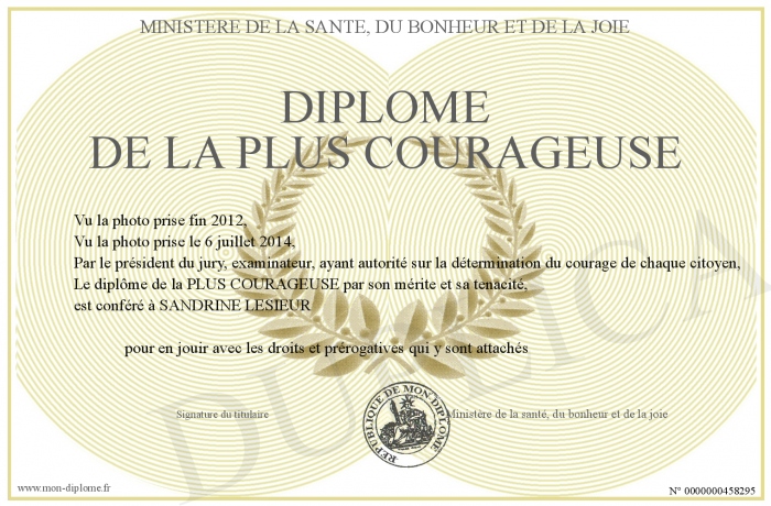 Envoyez par email votre Diplôme de la PLUS COURAGEUSE personalisé