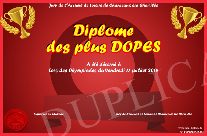 Envoyez par email votre Diplôme des plus DOPES personalisé