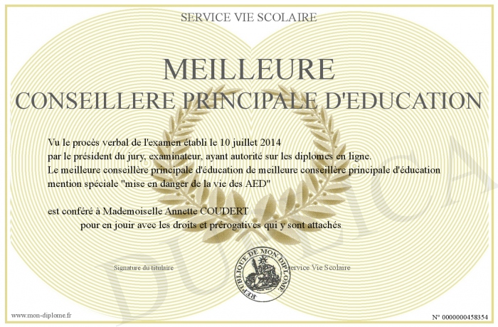 Envoyez par email votre meilleure conseillère principale d'éducation personalisé