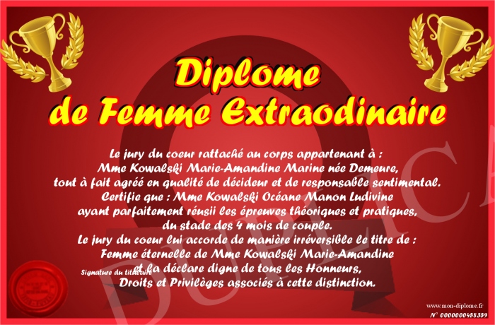 Envoyez par email votre Diplôme de Femme Extraodinaire personalisé