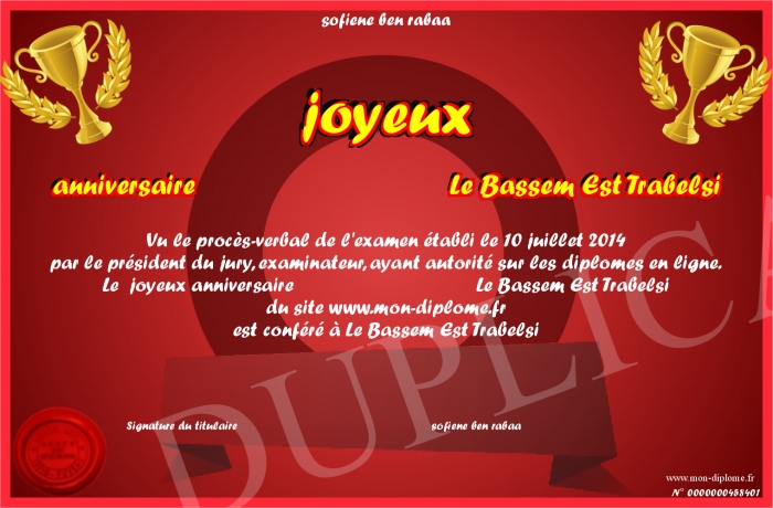 Envoyez par email votre joyeux anniversaire Le Bassem Est Trabelsi personalisé