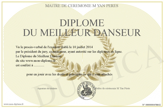 Envoyez par email votre Diplôme du Meilleur Danseur personalisé