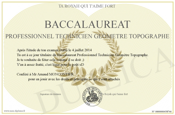 Envoyez par email votre Baccalaureat Professionnel Technicien Géomètre Topographe personalisé
