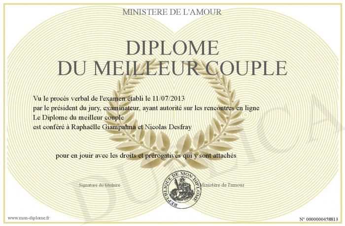 Envoyez par email votre Diplôme du meilleur couple personalisé